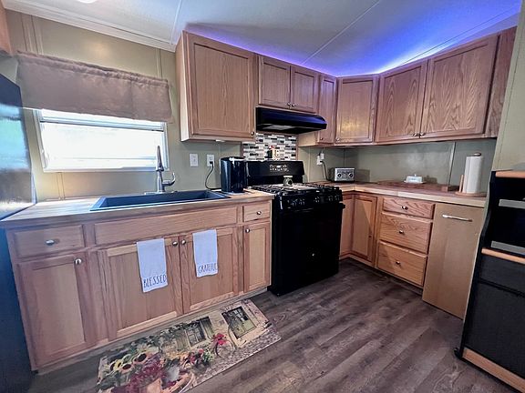 This wonderful home has been redone inside and out! 2 beds, 1 bath has a new kitchen with sleek butcher block counter tops, new flooring, furnace, roof, appliances, and so much more. 30-40 lb dog allowed with park approval.