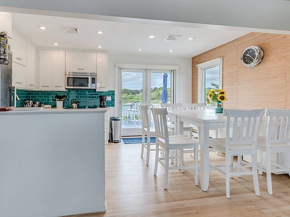This super stylish three bedroom, two bath waterfront ranch home has everything you need for summer fun. Moor your boat at your own dock. The renovated interiors are full of light, with lots of windows to enjoy the views across the bay. The master suite has glass doors to a sunny deck; additional bedrooms and bath are immaculate and inviting. Sunbathe or watch the boats go by on the upper deck, or enjoy the bocce ball court or volleyball. There's also a covered patio with picnic tables and outdoor heaters for a chilly evening. Relax on cushioned benches near the water, gather around the firepit at night. You may never want to leave, but if you do, you're minutes to Southampton Village with its restaurants, shops, cultural destinations and of course, world class ocean beaches.