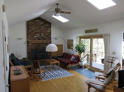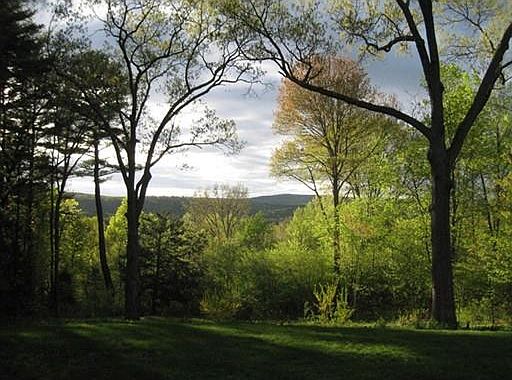 Privacy and a lovely view of Walnut Hill within a 5 minute drive to Northampton. 3 to 4 bedrooms and 3 full baths, 2 being "en suite". 4th bedroom makes a great home office. Family room has skylights in its cathedral ceiling, fireplace with wood stove insert, sliding glass doors to deck to enjoy summer evening barbecues. Family room is open to the kitchen which has a built in breakfast nook in the big bay window that encompasses the view. Formal dining room has built in shelving, spacious living room. Upstairs are 3-4 bedrooms. Skylit master bedroom has walk in closet. Its bath has a deep soaking tub to relax in while enjoying the view of distant hills. Second bedroom is equally splendid with its own private bath and a balcony. Hardwood and tile floors throughout the house. Well maintained home with a brand new roof. Well tended garden areas and just enough woods. This comfortable well laid out home on a level lot is a must see.