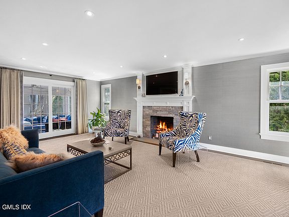 The complete package on this cul-de-sac in Riverside. This 4,302 sq ft turnkey 5 bedroom, 5.5 bath was renovated to the studs and custom-built to the highest standards, featuring hardwood floors throughout, modern high-end finishes and tech-savvy upgrades like Cat-5 cables, 9 zone custom audio system and Nest. The stone-trimmed foundation and front entrance add to the stunning curb appeal. The spacious living room with fireplace opens to a 168sf enclosed four-seasons porch (not included in total sf), with custom lighting, AV/TV, ideal for game night, parties and family gatherings. The heart of the home is the gourmet kitchen, boasting Wolf, Miele (2) and Subzero appliances, custom cabinetry and an 11' white macaubas quartzite island with seating for 6. The sunlit kitchen has oversized windows is open to the family room detailed with shiplap and dining room with custom built-ins. Completing the first floor is an office/bedroom with custom built-ins, a generous mudroom with full bath.