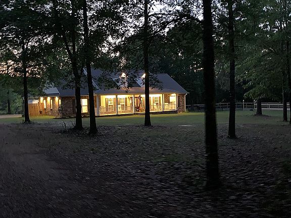 2,257 sq ft home 1,524 sq ft Barn/shop 400 sq ft back porch 241 sq ft front porch 150,717 sq ft lot (3.46 acres) Home details: Brick & vinyl Concrete slab foundation 3 or 4 BR 2 BA Office (could be used as a bedroom) Pantry Laundry Wood burning fireplace Carport Huge front porch (241 sq ft) Huge back porch with 3 ceiling fans (400sq ft) Fenced in area for dog(s) with custom dog house Attic Outdoor insulated storage room off carport 1,525 sq ft Shop w/ water, electric, insulated & heated/cooled with a custom solid wood 2 stall Barn with electric for fans/lights & heat lamps & has hay racks installed Riding arena Fiber Optic lines for wifi & streaming Septic tank Lakeside water Hardwood floors Ceramic tiles Vaulted greatroom with custom wood (living room, dining room, kitchen & office/bedroom vaulted with Sheetrock ceiling ) 10ft ceilings everywhere else Large windows throughout Giant kitchen island with stainless steel large sink Stainless high-end electric appliances Granite Custom stone backsplashes Under counter lighting Pantry Storage throughout the home Bedrooms/Baths: Walk-in closet in 2 guest rooms and master 4th bedroom/office with custom closet and office built-ins 2 full storage closets on guest side Dual sinks in both baths Corner jacuzzi tub in master bath Custom tiled walk-in shower with bench seating & rain shower head in master bath Master bath water closet Master bath custom vanity area Less than 5 mins from Lake Columbia