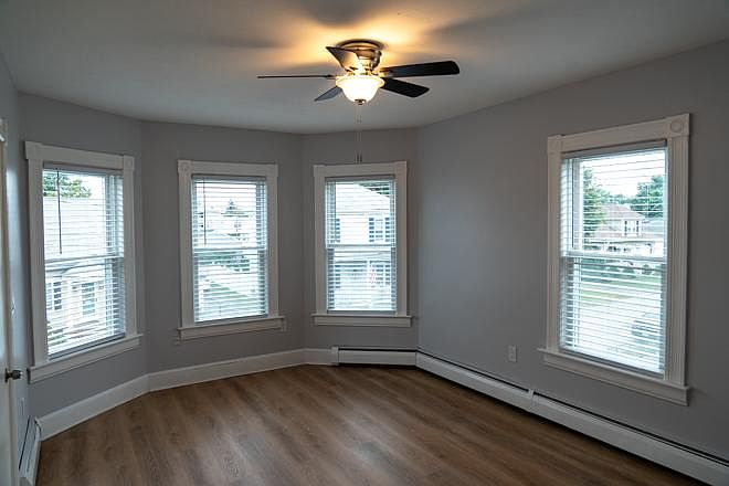 Unit and location: three bedrooms and 1 bathroom. 2nd floor of a triplex located on a quiet dead end street in the west end of Manchester bordering Bedford, available for 10/15. Easy access to downtown Manchester and I-93 highway. 1 GARAGE spot and 1 OFF STREET PARKING spot included in rent. This unit was just renovated with brand new flooring, a new kitchen, a refinished bathtub, fresh paint, and new fixtures. It has a beautiful overlooking view with three bay windows along with an open concept kitchen/dining room and a separate living room space. IN UNIT LAUNDRY with washer/dryer provided. $2,100 per month. 12 Month lease minimum, 24 month preferred. First month and security deposit ($2,100) due at signing. Cats allowed, no dogs. $50 pet fee per month per pet. All applicants will be subject to a credit check and background check ($43 screening fee). Tenant is responsible for gas and electricity as well as snow shoveling. Landlord will pay water and sewer as well as lawn mowing.