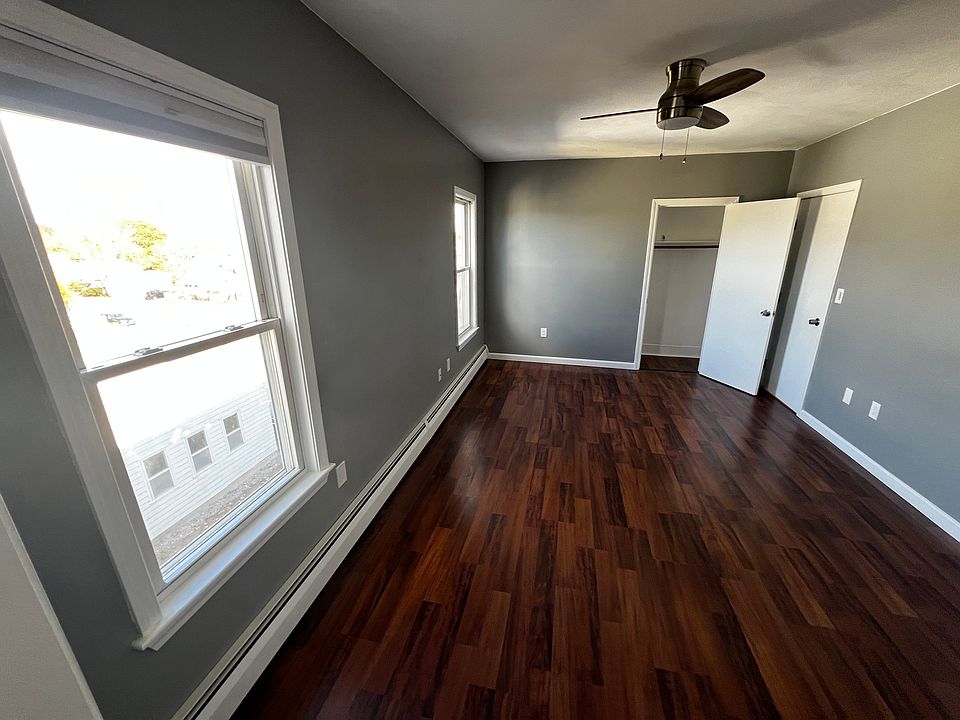 Very spacious 3rd floor unit in a triplex located on a quiet dead end street in the west end of Manchester bordering Bedford, available for immediate occupancy. Huge walk in closet in the master bedroom. Roomy bathroom. Easy access to downtown Manchester and I-93 highway. This unit was just renovated with brand new flooring in the bathroom and a fresh coat of paint. It has a beautiful overlooking view with three bay windows for sunrise/sunset enjoyment, along with an open concept kitchen/dining room and a separate living room space. IN UNIT LAUNDRY INCLUDED. $1,750 per month. 12 Month lease minimum. First month and security deposit ($1,750) due at signing. Cats allowed, no dogs. $50 pet fee per month per pet. All applicants will be subject to a credit check and background check ($43 screening fee). Tenant is responsible for gas and electricity. Landlord will pay water and sewer as well as lawn mowing.