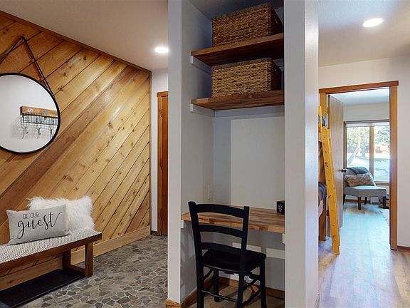 Contact Brandee Dell'Aringa for information at BDmammoth@gmail.com or (323) 816-3392. Beautifully remodeled one bedroom, one bathroom in the highly desired Snowcreek I condo complex. Conveniently located near the Snowcreek meadow, the TOML bike and walking path, and the shuttle stop which can take you around town and to the ski mountain. The completely renovated kitchen has new appliances and wood cabinetry with quartz marble style counter-tops that accentuate the stainless steel sink and new fixtures. The entry flooring is a mosaic stone and there is wide plank vinyl wood-style flooring throughout. The shelves in the kitchen, and the desk nook near the entry were created out of Boeing airplane engine crates which also feature USB wall plugs to charge your devices. Sleep more guests with additional sleeping in the double twin bunk nook and the contemporary queen sofa bed with an easy-open strap and foam mattress. Enjoy watching TV on the 50" flat screen TV which is mounted on a swing mount above the fireplace mantle which was crafted out of reclaimed wood from the Pacific Northwest. Both the dining room and bedroom have energy-efficient hydronic baseboard heaters on state of the art smart WIFI thermostats. Other features include a washer-dryer off the bathroom, a ski/storage closet outside the front door, and a brand-new water heater. This condo has great nightly rental potential, and is sold completely furnished ready to enjoy this winter! Don't miss the 3D Virtual Walk-Through Tour: https://my.matterport.com/show/?m=rMSymjmhhtX