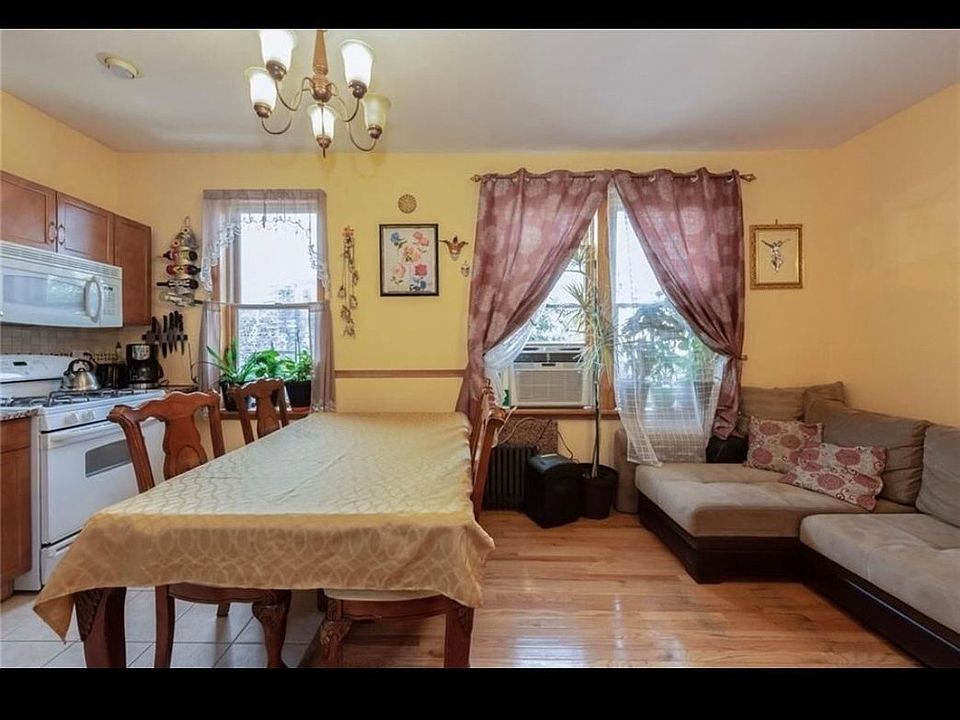 2nd floor ~Two bedroom junior apartment in Gravesend. Open layout kitchen/living room combo with hardwood floors throughout and tiled kitchen floor and bathroom. Tenant responsible for gas and electric.