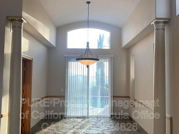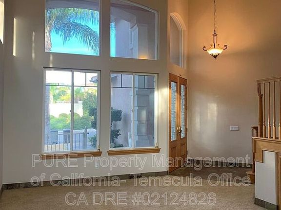 Welcome to this spacious 5-bedroom, 3-bathroom home in the desirable Lake Elsinore, CA area. This home features a balcony perfect for enjoying the beautiful views, as well as a dining room and family room for entertaining guests. The master bathroom includes his & her sinks and a walk-in closet for added convenience. The property boasts a pool for relaxation and enjoyment, along with custom paint and granite countertops for a modern touch. With amenities such as a dishwasher, downstairs laundry room with washer dryer hookup, and patio cover, this home is perfect for those looking for comfort and style. Home has a 3 car garage. Listing and marketing information provided is deemed reliable and accurate but not guaranteed - agent, broker, and resident should confirm all property information and specifications before entering rental agreement. Visit our website to review our rental criteria prior to submitting an application. A $54 non-refundable application fee per adult will be charged. Every person over 18 who would reside at the property must complete and submit a rental application. We are a fair housing provider. All applicants will be subject to the same application criteria. For REDUCED move-in costs, talk to us about our Security Deposit Replacement Program! All residents are enrolled in the Resident Benefits Package (RBP) for $39/month which includes HVAC air filter delivery, our best-in-class resident rewards program, identity protection, and much more! More details upon application. *We do not accept applications from any 3rd party service including Zillow. Please apply on our website directly. PURE Property Management of California DRE #02124826 Amenities: Balcony, Ceiling Fan, Dining Room, Family Room, His & Her Sinks, Walk In Closet, Pool, Carpet, Custom Paint, Dishwasher, Granite Countertops, Patio cover, Tile, Washer Dryer Hookup