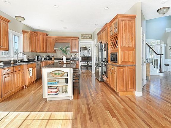 Exquisite 5 bedroom, 4.5 bath Colonial, with a 3 car garage nestled on a sprawling acre lot. Chef's dream kitchen featuring pristine granite countertops and center island, plentiful cabinetry, double oven, and Brazilian cherry hardwoods underfoot. Breathtaking cathedral ceiling family room with custom stone fireplace and a gorgeous wall of windows. Formal dining room with an elegant tray ceiling and wainscoting that connects to the formal living room, creating the perfect ambiance for dinner parties and special occasions. Your main bedroom is a sanctuary with its own sitting area, a jetted tub for unwinding, and a spacious walk-in closet to fulfill your fashion desires. Professionally landscaped grounds with patio and inground pool provide a private oasis for relaxation and recreation. Easy access to the MA Pike, Route 146 and MBTA commuter rail.