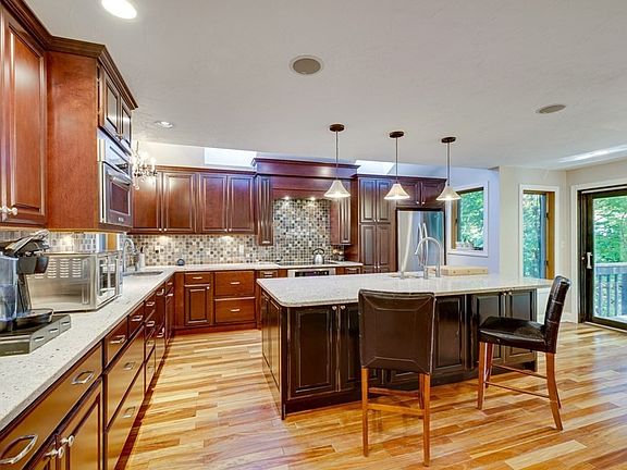 Beautiful contemporary Cape with stone accent exterior, located in the desirable Chestnut Knoll Estates of North Easton. Wonderful floor plan with dramatic family room with high ceiling and fireplace, gorgeous and spacious chefs kitchen with large island, granite, high end stainless appliances, pot filler, wine refrigerator, Fisher Pakel dishwasher drawers and backsplash. The first floor also offers a formal dining room and home office/playroom. The master suite has a large walk-in closet, new carpeting and private bath with jacuzzi tub. Hardwoods, grand foyer/balcony, two car garage, 4 bedrooms, 2.5 baths, irrigation system, generator, 2 large decks, large mudroom/laundry room. Walkthrough video and floor plan attached.