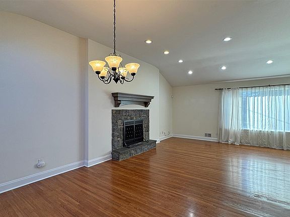 This bright and airy residence offers effortless living with gleaming oak hardwood floors. The inviting living room features soaring ceilings, skylights, a cozy fireplace, and sliding doors leading to an oversized deck perfect for entertaining. The eat-in kitchen boasts granite countertops, cherry wood cabinetry, and stainless steel appliances.