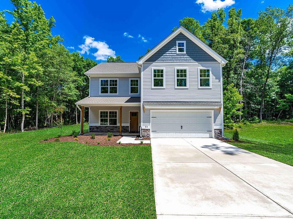 Welcome to 11 Coventry Lane, where a rare opportunity awaits you to own a new construction home in an established community! This spacious property sits on a 1/2 acre lot, offering plenty of room to roam and enjoy the outdoors. With city water & sewer and NO HOA, this home provides the perfect blend of convenience and freedom. Step inside and be greeted by a bright and open floorplan, with 9' ceilings throughout the 1st and 2nd floors. The downstairs area boasts a family room, dining room, and a versatile flex room that could serve as an office, playroom, or whatever suits your lifestyle. The kitchen is a chef's dream, featuring quartz countertops, tile backsplash, stainless steel appliances, and a charming farmhouse sink. As you make your way upstairs, the master bedroom beckons with DUAL walk-in closets and a luxurious master bath complete with a double vanity, water closet, and oversized fully tiled shower. Three more generously sized bedrooms, each with its' own walk-in closet, provide ample space for family or guests. An additional full bath with double vanities ensures everyone's comfort. Outside, you can unwind and entertain on your covered patio, overlooking your private backyard lined with mature trees. With a total lot size of 1/2 acre, there's plenty of space for outdoor enjoyment. Don't miss out on this fantastic opportunity to make 11 Coventry Lane your new home sweet home!