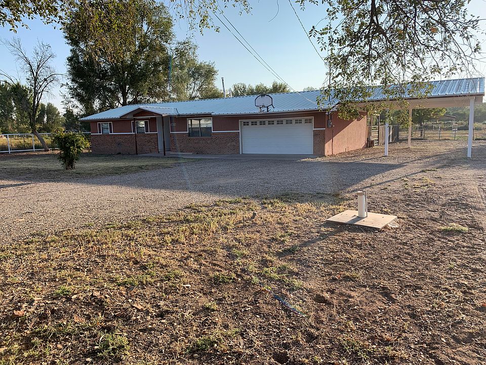 Great Rio Grande valley location. Country living at its best. Featuring Pipe fencing in the back, Pipe fencing horse stables. 36x22 barn with hay area. Irrigation well and pump. Large covered patio for your outdoor gatherings or BBQ's. 2 storage sheds. Interior features, 2 living areas, on e with sunken living with wood burning stove, ceiling fans in all rooms except kitchen. Finished 2 car garage with work benches. Water softener, Refrigerated air unit, over sized 2 car carport and Pro-panel roof Recently re stucco exterior and painted interior. Note the brick veneer to be repaired and the damage facia to be replaced and painted within the next 2 weeks.