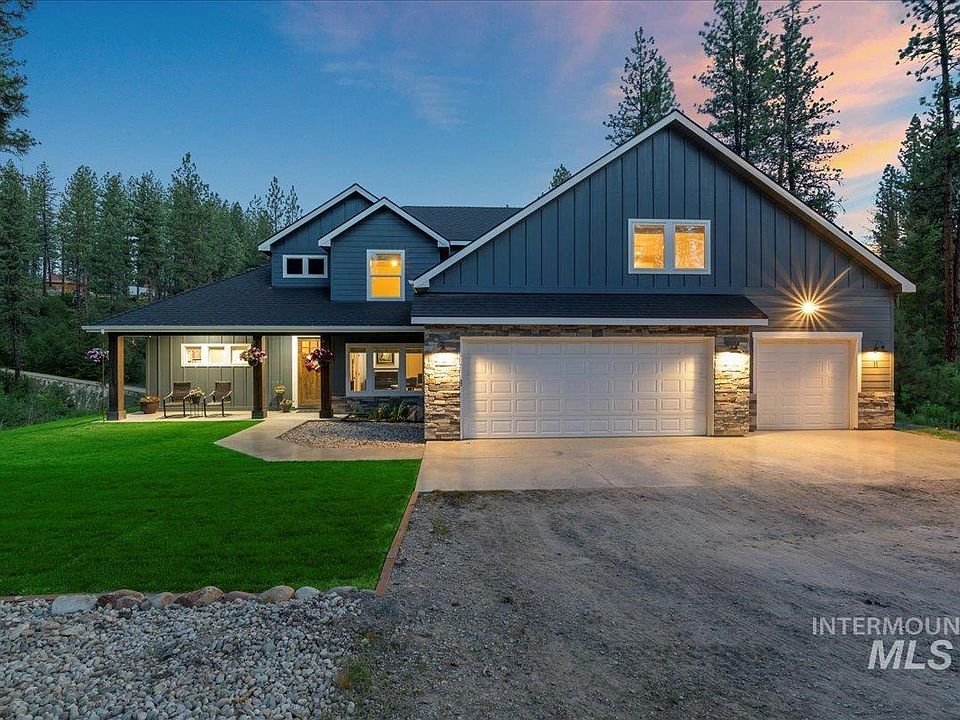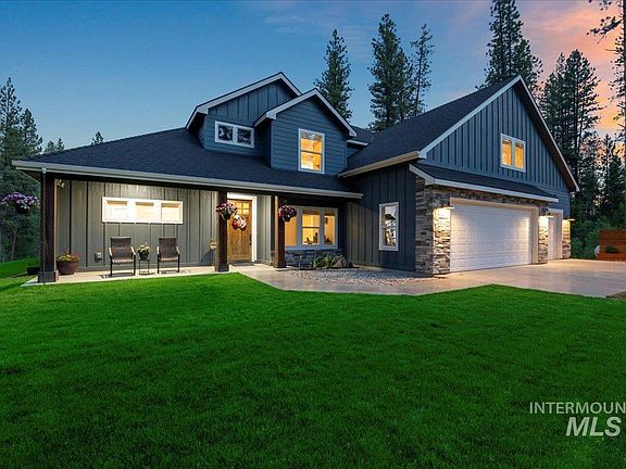 Tucked in a private community bordering public land, this Idaho City home offers unmatched access to year-round recreation. Enjoy direct trail access, wildlife, and privacy and it's only 30 minutes from Boise major grocery and employers in Boise. The open floor plan features main-level living, 4 beds, 3 baths, and a flex space ideal for an office or hobbies. The kitchen includes a large island, double ovens, gas cooktop, and walk-in pantry. Oversized windows bring in mountain views, and the master suite includes a tiled shower with dual heads, soaking tub, and scenic views. Outside, enjoy real and artificial grass, multiple patios, private sledding hills, and extended concrete driveways with a pull-through garage. Approved plans for a 52’x28’ shop are available. Only minutes from The Springs Resort, Lucky Peak, and historic downtown Idaho City. This property blends comfort, convenience, and the lifestyle Idaho is known for.