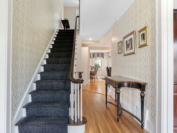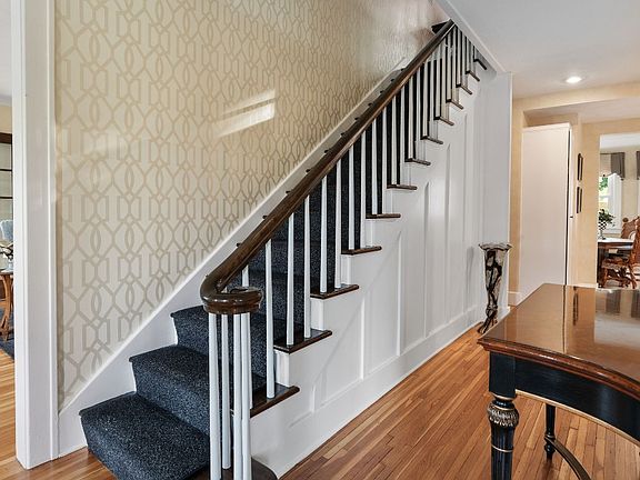 Traditional elegance throughout this meticulously maintained home. From the moment you step onto the property, you are welcomed with manicured grounds and beautiful landscaping. Natural light fills the rooms to showcase the gleaming hardwood floors and pristine finishes. The renovations perfectly complement the charm and character of this home while offering the best in modern conveniences. Fabulous new kitchen and baths! The living room has custom cabinetry with a window seat, and a new gas fireplace with custom shelving and beautiful millwork. There is a second entrance to the lower level that has a family room, office, laundry, and large storage room. Sliding doors from the sunroom lead you to a large concrete patio where you can enjoy the flowers and views of the hills. The lovely, fenced backyard is a perfect space to relax. The attention to detail is evident as you tour this home. A truly special property!