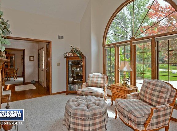NEW PRICE~Wonderful 4 BR/3 BA home~Premium 1.21 acre lot~Gorgeous views~Interior features include volume/vaulted ceilings, 2-story foyer/LR, 2-sided FP, hardwood flooring & oversized Anderson windows~Master suite w/vaulted ceiling, 2 closets & private bath~Spacious kitchen w/eating area, custom cabinetry, breakfast bar & planning desk~Formal DR~Sunroom~1st flr laundry~2 decks/pergola/garden shed/heated 4 car garage!