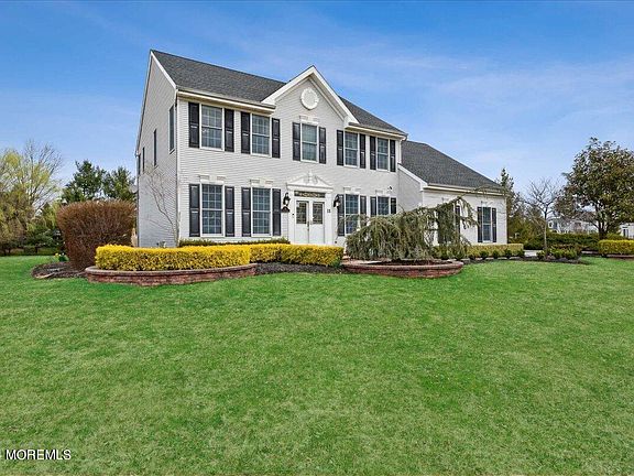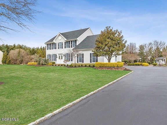 Nestled within the esteemed Four Maples Development in East Freehold, discover this exquisite Custom-Built Colonial, epitomizing luxury living at its finest. Impeccably crafted and lavishly upgraded, no detail has been overlooked in creating a haven of opulence and comfort. Boasting four expansive bedrooms, a convenient first-floor office, 2.5 newly renovated bathrooms, and a full basement, this home offers an unparalleled living experience. As you approach, you'll be greeted by an oversized driveway, paver walkway, and lush landscaping. Step inside to a two-story foyer, gleaming hardwood floors, elegant formal living room, and a chef's gourmet eat-in kitchen, a culinary masterpiece featuring custom cabinetry, granite counters, backsplash, recessed lighting, pendant lighting, center island, top-of-the-line stainless steel appliances, and a wine refrigerator with wine/beverage station. The kitchen seamlessly flows into the great room, adorned with a vaulted ceiling, cozy gas fireplace, and elegant French doors. A first-floor office with custom built-ins ensures productivity and comfort for those who work from home or need a private space. Completing the first level is a large laundry/mud room equipped with ample storage, sink, and easy access to the garage. The second level is equally impressive, offering generously sized bedrooms, including a luxurious primary suite featuring a walk-in closet and a stunning spa-like ensuite bath with dual sinks, soaking tub, and expansive walk-in shower. A full basement provides additional storage and living space. Additional highlights include a newer roof, security system, and freshly paint throughout. The exterior boasts an oversized Belgium block driveway, two-car side entry garage, paver walkway, large patio, shed, irrigation system, and exterior lighting. The flat, level lot is professionally landscaped with mature plantings, ensuring beauty and privacy. Ideally located to all major highways, NYC transportation, shopping, and beaches. Top-rated Freehold Regional School District. Timeless appeal and elevated design make this home a perfect 10!