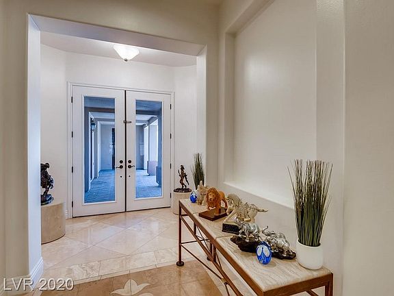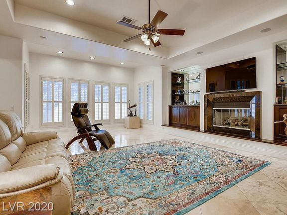 Beautiful single story home located in Topaz Ridge, an all single story community within The Ridges neighborhood in Summerlin. Guard gated, plus a second private gate for your peace of mind. Highly upgraded with travertine floors, stunning marble counters, newer commercial grade Thermador appliances, built in espresso maker, custom cabinets in a rich dark brown, double kitchen islands, plantation shutters throughout, 3 car garage, separate casita with kitchenette, full bath, and direct garage access. A lagoon style pool and spa, outdoor kitchen/BBQ, plus a center courtyard make this home feel like an exclusive resort. New high efficiency AC units, solar screens on windows, custom landscaping and so much more! The Ridges offers a lifestyle like no other. Owners have exclusive access to Club Ridges with a state of the art fitness center, tennis, pools, yoga studio, and private fitness coaching. Easy access to McCarran International Airport, shopping, restaurants, and Red Rock Canyon.