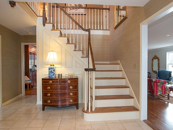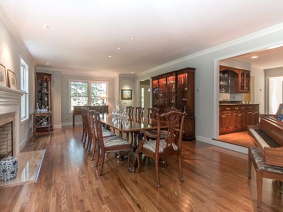Country Club location and a beautiful desirable neighborhood. House has been renovated within the past year. Sparkling white kitchen with stainless appliances opening to a great room with walls of windows. Handsome family room also adjacent to the kitchen has a wet bar, built-ins and fireplace. Large stunning living room with fireplace connecting to a fully paneled library. A formal dining room. Lower level has staff quarters with full bath, playroom and wine cellar. Upper level has four bedrooms plus a sitting loft. A move-in home with a stunning high setting plus convenient to trains, schools, "Y" and town. Whole house generator. Room for pool. Field card says four bedrooms but lower level has additional staff quarters.