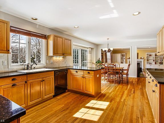 This elegant brick-front Colonial is situated on a beautiful .52 level acre lot in sought after Greenwood Meadows of Warren Township. An updated Mahogany door welcomes you into a beautiful open floor plan w a two-story foyer showcasing a curved staircase.Freshly painted dining room with wainscoting and bay window,and living room with beamed ceiling allow for formal entertaining.The family room features a fireplace,built-in shelving,open to the eat-in kitchen with lots of cabinets,granite,tile backsplash and slider to the Trek deck private back yard.The first floor office w cathedral ceiling and French door entry.A bright and airy master bedroom offers 2 walk-in closets,and a lovely updated master bath.The finished basement offers living space w music room,office or possible 5th bedroom,full bath.