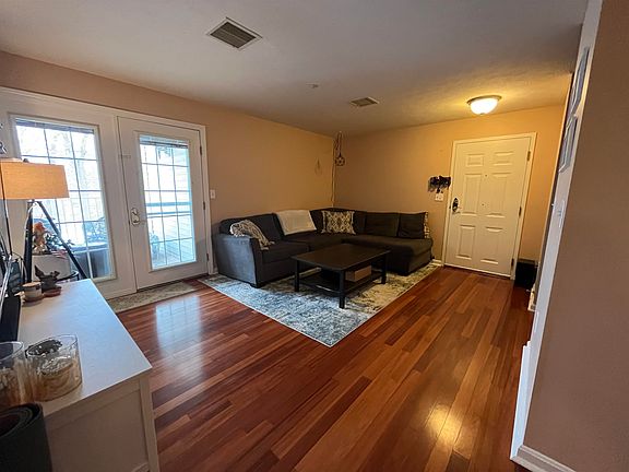 This splendid corner condo is located at the desirable Crosswoods Path complex with same level parking (no lugging furniture or groceries up flights of stairs), and a beautiful view overlooking the pond and gazebo. Well maintained with stunning Brazilian cherry wood floor in living areas. Kitchen is equipped with granite counters and stainless appliances with ample cooking and cabinet space. Separate dining and family rooms with French doors that open to a covered porch. Main bath has been recently updated with large vanity and mirror. Corner master bedroom has separate bathroom and substantial closet space. A second bedroom can double as an office. Convenient, full-size washer and dryer are tucked neatly behind bi-folds doors in hall closet. Heating and cooling systems are less than 2 years old. Personal unit in lower level for additional storage. Conveniently located for commuters and activities. 15 minutes to Manchester airport. Boston, skiing, and the ocean are less than 1 hour away!