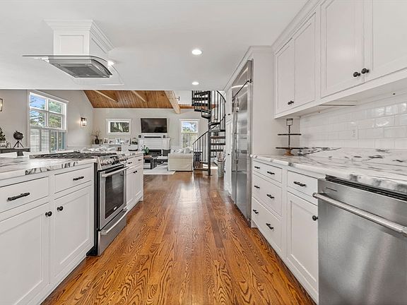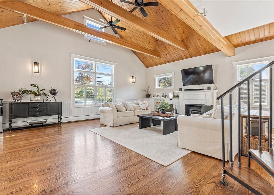 Set on one of Burlington’s most beautiful lots, this private, fenced-in property abuts conservation land with 115 feet of frontage. Completely renovated and spacious multi-level farmhouse-style home with 3 finished levels above grade! This 5-bed, 2.5-bath property offers a flexible layout with in-law potential, including a private entrance and second kitchen. The stunning modern kitchen features a 11-foot island, quartzite countertops, and flows into a huge open-concept living area—perfect for entertaining. Enjoy a large primary suite, beautifully updated baths, and gorgeous hardwood throughout. Relax on the enormous deck and patio or enjoy the new Reeds Ferry shed. With a garage, large driveway, tons of basement storage, Hardy siding, composite trim, newer systems, and full insulation, this energy-efficient home has it all. Amazing location close to top schools, Wildwood Park, Burlington Mall, Lifetime Fitness, restaurants, and major routes