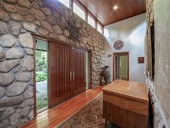 Nature's Paradise! 2.61-acre contemporary home, 4 beds, 4 baths (over 4100 sq-ft) amidst hardwoods, complete with a serene stream. A haven for nature lovers seeking urban conveniences. Enjoy privacy with municipal amenities, nearby schools, medical facilities, and easy highway access. Unique triangular parcel is secluded, no neighboring structures visible from spring to autumn. Upper Level: with over 2100 sq-ft, featuring a grand entrance, expansive great room with a dining area, kitchen with custom cabinets, an island, and a breakfast nook. Primary bedroom suite offers a balcony, skylight, jetted garden tub, walk-in shower, and study/sitting room. Lower Level: Fully finished with over 2000 sq-ft basement, with a den, additional bedrooms, baths, project room, and potential in-law suite. Abundant storage, hardwood, ceramic tiles, and plush carpeting. Vaulted wood ceilings, Pella windows capturing woodland views. A rare gem for enthusiasts seeking a blend of nature and modern living
