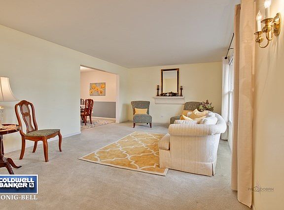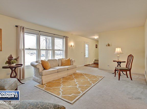 One of Cary's most sought after neighborhoods, this Greenfields charmer is waiting for YOU! This 4 bdrm, 2.5 bath home is nestled on a mature wooded lot & quiet cul-de-sac. Brand new carpet! Lg. eat in kitchen feat. newer SS appliances (incl. brand new refrigerator & microwave), pantry & eating area opens to great room w/ cathedral ceiling, fireplace, & lots of sunlight. The huge professionally landscaped yard is fenced in and ready for your summer BBQs. Separate dining room and formal living room are perfect for entertaining & holiday gatherings. All bathrooms in the home have been recently renovated. The full, partially finished basement gives you nearly another 1000 sq ft of space! Currently it includes a large rec room w/ wet bar, office space, bonus room, huge crawl space for extra storage, huge laundry area & roughed in for another bathroom. Close to Metra, nearby schools, parks, pool, community ctr & downtown Cary. Move in ready!