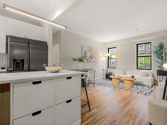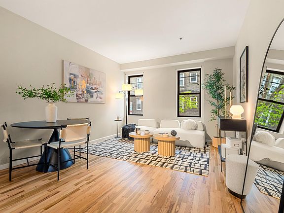 Welcome to Cuneo Court, a boutique building with low monthly fees and a shared landscaped yard nestled on a picturesque tree-lined street on one of Jersey City Heights' most desirable blocks. This newly renovated and beautifully styled 2-bedroom, 1-bath condo offers 850 sq ft. of thoughtfully designed living space on the elevated first floor—blending sleek, modern finishes with everyday functionality. Step into this chic and modern home with north and south-facing windows, gorgeous newly refinished hardwood floors, recessed lighting, new water heater and three HVAC heating/cooling units for year-round comfort.The sleek newly installed kitchen is a dream for cooking and entertaining, featuring brand-new smart wifi appliances, fridge with water/ice dispenser, convection oven with air fry function, low noise dishwasher, Kohler faucet, an abundance of custom cabinetry, and elegant quartz countertops. The renovated spa-like bathroom is your private retreat, complete with ambient radiant heat flooring and a thermostatic valve shower system for ultimate comfort and style. Enjoy the landscaped common backyard with BBQ grill and onsite laundry room. Location is everything—and this home delivers. You're just steps from the NYC bus, Janet Moore Playground and Ogden’s End Community Garden. Also an easy walk to the 2nd St Hoboken stairs and light rail station, Citibike, Riverview Park, farmers market, supermarket and trendy new restaurants including Prato Bakery, Low Fidelity, The Franklin, Choc O Pain, Corto, The Alps, and coming soon Àbak?Books + Cafe. This condo checks all the boxes for those looking for a tastefully newly renovated home with easy access to NYC transport and perfectly located in the thriving Heights neighborhood. Low monthly fee! 15%+ down payment preferred.