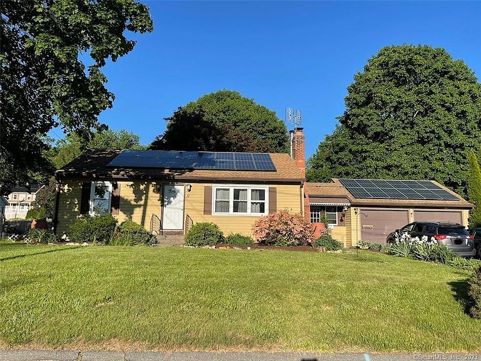 Charming ranch with level lot, two car attached garage, solar panels and new boiler! Enter through a spacious mudroom which you can access from the garage, front or back door. Ideal for every homeowner to help keep your home clean. Step out to this level yard featuring multiple fruit trees and a greenhouse to expand your growing season! There is also a Kloter Farm shed for your storage needs & invisible dog fence for your four legged family members. Back inside you have an eat in kitchen with updated stainless steel appliances, ceiling fan and quartz counters, with planters window that overlooks the backyard. Spacious full bathroom that has been remodeled/updated featuring a large walk in shower. Two bedrooms with with hardwood floors, ceiling fans and good size closets for storage. The living room also has hardwood floors, ceiling fan and a cozy wood burning fireplace. Open unfinished basement with newer washer and dryer and plenty of room for all your storage needs. This home has a new boiler and oil tank! This home is unique in that it has the option of oil heat or wood (two separate boilers). Don't forget the pull down walk up attic for even more storage and potential. Move right into this quaint country home.