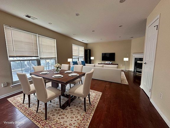 Welcome to this bright and spacious 2-bedroom, 1.5-bath corner unit in the desirable gated community of Society Hill, Jersey City. Featuring wood floors throughout, an eat-in kitchen with stainless steel appliances, and a private balcony to enjoy the natural light, this home offers both comfort and style. The primary suite includes a generous walk-in closet, while ample storage space throughout ensures convenience. Enjoy central air and heat, plus the added bonus of 1 assigned parking space and guest parking. The community amenities are second to none, offering an outdoor pool, tot lot, waterfront promenade, and clubhouse for your enjoyment. Perfectly located with easy access to all Jersey City has to offer! NO PETS.
