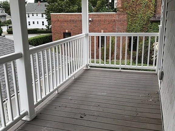 This spacious 2nd floor, two level apartment in the Harvard Lawn neighborhood has been completely renovated and updated! A living room with beamed ceiling and gas fireplace leads to a dining room and then eat in kitchen with SS appliances and granite countertops. You can step out onto a private porch overlooking the back yard and two additional bedrooms and a full bath complete the 2nd floor. Walk up to the 3rd floor to a large bedroom, a bonus room, full bath and laundry room. This level also includes a lot of storage closets. Enjoy central air and hardwood floors throughout plus plenty of extra storage space in the basement. This unit is conveniently located close to public transportation, the 73 bus to Harvard Station, Grove St park, restaurants and shops. Pets with restrictions, no smoking. Must see!
