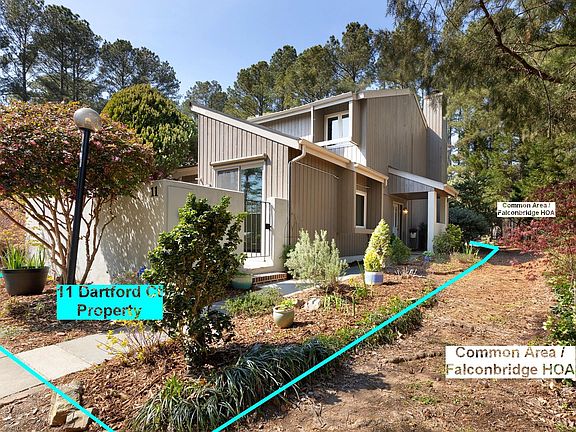 Exceptional End Unit Falconbridge Townhome - not another one like it. SO MANY UPGRADES! ASK TO SEE THE FEATURES LIST! Focus on Energy Efficiency, Noise Cancelling, & Comfort. Gorgeous, permitted sunroom w/ triple pane windows & spray foam insulation behind tongue & groove ceiling. EV Ready charging station. Spray foamed attic. Dual zone HVAC. Newer casement windows throughout & oversized glass sliders. Remote controlled ext solar shade. Updated plumbing & H2O Heater 2020. Newer appliances. Cork, LVP, & Bamboo floors in living spaces & bedrooms. Smooth ceilings& all new paint. New roof 2015. Updated fixtures & numerous dimmable can lights throughout. Sunny private front Courtyard. Only 2 steps between parking space & foyer entrance. 1st Flr Bed + Bath option. Views of nature from almost every window. Multiple skylights. Excellent storage. Southwest Facing unit on dead end street next to mature tree & garden area. On busline and easy access to 40. So close to shopping, dining, UNC, Duke, and RTP. Beautifully presented. Lovingly maintained & upgraded. Such a gem: it won't last long!