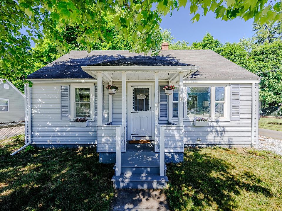 Move in ready quaint cape home could be yours! Through the front doors is the living room, with access to the Primary Bedroom that boasts a very large walk-in closet. The kitchen has butcher block counters and looks into the light filled sunroom. The Bathroom is also on the first floor with unique wood wall detailing. As you go up the ornate wood staircase, you'll find a nursery and bonus room that could be used as an office or playroom. In the partially finished basement, you'll find an exercise room and the laundry. Outside there is a landscaped level yard and a large deck off the back with a storage shed for your outdoor tools! This home has easy highway access making it a great commuter location! Shopping and restaurants are nearby. Showings to begin Saturday.