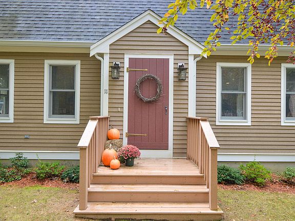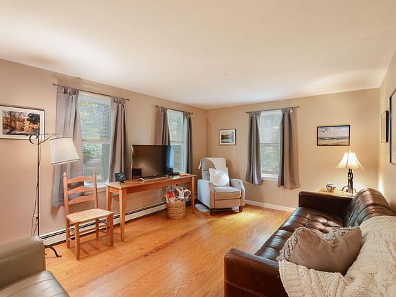 Set back on wooded lot is this move in ready Gambrel with flexible floor plan. The kitchen is open to dining room (or family room) with gas fireplace unit, wide pine floors and side door to deck. Living room also features wide pine floors. First floor bonus room ideal for den or office. Upstairs are three bedrooms with new carpeting. There are two full updated baths - one on each level. There is a full basement, outoor shed, all windows replaced within the past ten years, roof five years, oil boiler eight years, passing Title V for 3 BR. Snake Pond is nearby for swimming, kayaking, fishing recreation.