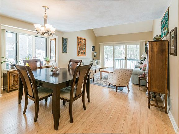 Your new home has 2 master bedrooms - one ground floor and another one that is even larger on the second floor, each with dual closets and bath. The first floor master has direct access to a private deck and wooded backyard and the second floor master features a loft for extra seating or a home office. Eat-in kitchen features stainless appliances, ceiling fan and recessed lighting. An open concept living room and dining room with a cathedral ceiling and skylight, and french door to the private deck - a wonderful layout for entertaining! Basement is ready to be finished to what you want. Flat grassy area in the back and side of the unit leads to wooded area - and you don't have to maintain it, just enjoy. 2 deeded parking spaces directly in front of this end unit, as well as ample visitor parking. Move right it and start enjoying.