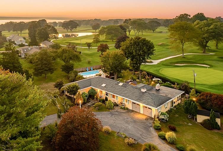 Experience a unique lifestyle in an amenity-enriched neighborhood nestled within the Warwick Neck community~ This stunning property offers a rare opportunity to own a piece of paradise located in a quintessential coastal New England area surrounded by Narragansett & Greenwich Bay~ This sprawling ranch sits on a corner acre lot and overlooks the 15th hole of Warwick Country Club Golf Course. The home will impress from the moment you enter with floor to ceiling windows showcasing the lush landscape and golf course blending indoor-outdoor ambiance. Featuring 3,000 square feet all on one level, spacious open concept layout, two ensuite bedrooms, home office and bonus room which can easily be a 3rd bedroom or guest space. Interior features include custom luxury finishes, exposed beams, hardwood flooring, glazed maple cabinetry, artisan lighting, chic vanities and fixtures, etched glass interior doors, wood burning & gas wall fireplaces. Oversized sliding doors open to an inviting patio with covered gazebo, enchanting landscape lighting and mature gardens. This impressive residence is a relaxing retreat perfect for entertaining with spectacular outdoor living space, private serene salt water in-ground pool with charming cabana provides a peaceful setting while you enjoy relaxing and views of the vibrant sunsets over the golf course. Warwick Neck offers numerous neighborhood amenities including local farms, marinas, golf courses and beaches~ Live the Warwick Neck Lifestyle!