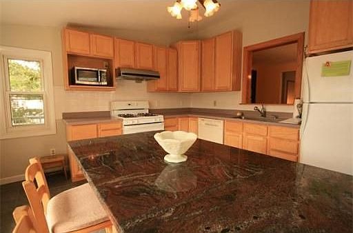 Delightful and very deceiving 7 room Cape. Four bedrooms, three baths, new sun-splashed gourmet kitchen, fireplace, hardwood floors and lovely yard. Four room in-law apartment in lower level with separate entrance. Walk to Riverside T. Not a drive-by!!!