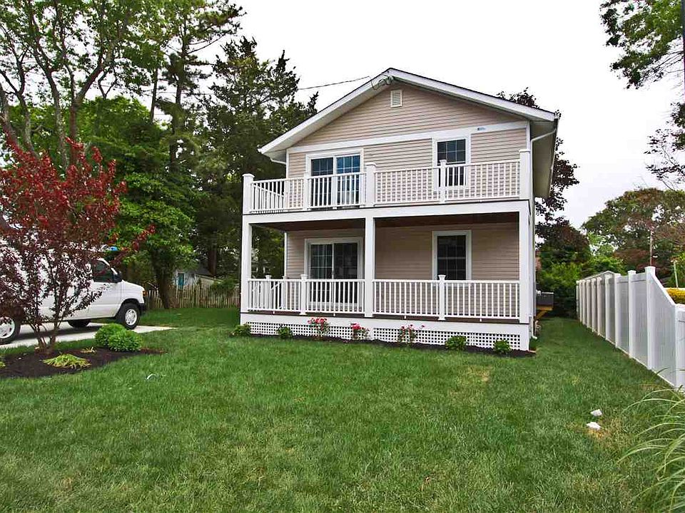 Located just 5 houses from the Delaware Bay, this home is light and bright both inside and out and has many features that lend to sunny-afternoon entertaining or quiet evenings rocking away on one of the two front decks. This 'reverse-story' or 'upside-down' home offers an inverted floorplan with waterproof, pet-friendly vinyl flooring throughout. On the first floor, you will find an open-concept living room with a sliding-door to the lower front deck, a plank-wall fireplace with a custom-crafted cement shelf, a full bathroom, 2 bedrooms, and stairs leading to the full basement. Walk upstairs, and you will find a fully-equipped kitchen with bright white shaker-style, soft-close cabinets, quartz countertops and a waterfall island with storage; an adjacent dining area with a sliding door to the second front deck; a half-bath in the hallway; and a master suite, featuring a 6-ft soaking tub. Both levels offer outdoor space, perfect for bay-breeze mornings or dining outdoors in the evening. The biggest wow-factor of this reverse-story home is the ample space on the lowest level. The full basement is where you will find a mechanical room, laundry room, and two separate spaces that can be transformed into additional living quarters. Pack your bags, your home awaits.