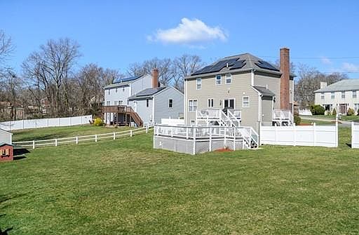 Beautifully updated colonial in great neighborhood setting! Open floor plan features newer kitchen with shaker cabinets, granite counters, tile floor, stainless appliances and slider to huge double tiered deck, family room with fireplace & hardwood, formal dining room and livingroom/office with hardwood, updated 1/2 bath and laundry. 2nd floor features master suite with 2 walk-in closets, hardwood floors and UPDATED master bath with tile shower and quartz counters. 2nd bedroom with walk-in closet, good-size 3rd bedroom and 2nd full bath. The walkout basement is finished with a large playroom and game room with laminate floors, an exercise room & a 1/2 bath. Other features include: hardwood floors throughout, central AC, 2018 heating system, NEW kitchen & master bath 2015, Shed, Solar panels 2017(savings of $500-$600/year), plus a HUGE fenced-in level back yard! Located convenient to, restaurants, shopping, major highways and commuter rail!