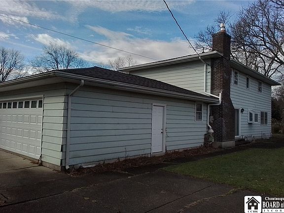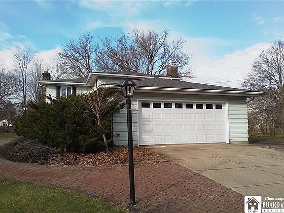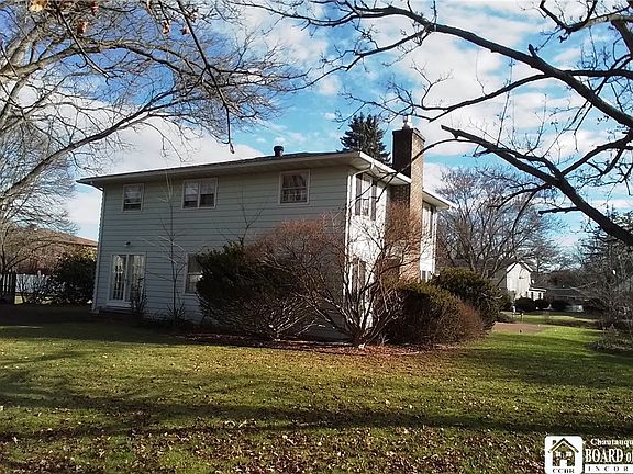 Contemporary spacious 2 story, 5 bedrooms with 2.5 baths, and attached 2 car garage in the Village of Allegany, with a beautiful landscaped lot and three patios. Enter into the open foyer with tiled floors. To the left you will see the Den/office space with plent of room for desk and wall bookcases. Elegantly remodeled kitchen features new cabinetry, self closing drawers, appliances, breakfast bar with quartz countertops and bar height seating, a three sided garden window for extra lighting and views. Hardwood floor living room with cozy stone gas fireplace is perfect for entertaining and being close to the kitchen for entertaining with friends, and sliding glass doors offer more lighting and exit to a patio. The home features a Larger TV/Family/Entertainment room with Stone gas fireplace with a built-in reading nook. Formal dining room has french doors to a patio and a built in serving area. Half bath off laundry area leads to a 2 car garage. An open staircase leads to the second floor with 2 full baths and five large bedrooms, all hardwood floors. There is a full basement perfect for extra storage. Kitchen appliances included in the sale. The home has zoned heating in each room.