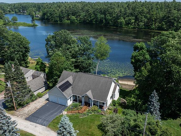 FIRST TIME ON THE MARKET! Welcome to this meticulously maintained, custom-built 3-bedroom, 2.5-bath home on Naticook Lake. At the heart of the home is a chef’s eat-in kitchen, featuring an oversized granite island, high-end custom cabinetry, a Sub-Zero refrigerator and abundance of storage. Leading into a warm & inviting family room, featuring a cozy gas fireplace perfect for quiet evenings. Whether you're entertaining on the Brazilian IPE wood deck, hosting a dinner party in the elegant dining room, gathering by the lake, or simply enjoying your morning coffee in the sunroom, this home offers a rare blend of beauty, privacy, and tranquility. The first-floor primary suite is a true retreat, offering 2 generous walk-in closets and a luxurious en-suite bath with double sinks & a soaking tub, your private oasis. Upstairs, you’ll find 2 spacious bedrooms, a full family bath, a versatile bonus room and spacious loft, the options are endless. Convenience continues with a first floor laundry room just off the mudroom and garage, featuring custom built-ins for extra storage. The garage is thoughtfully equipped with a slop sink and central vacuum for added functionality. Step outside to the beautifully landscaped yard, supported by a 9-zone irrigation system perfect for maintaining lush gardens. Owner-owned solar panels that transfer with the property, offering energy efficiency. All this, just minutes from local restaurants, shopping, and Route 3 for an easy commute.