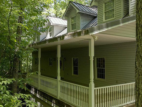 Beautiful, well maintained home thoughtfully built with special features galore!! Basement level 7 car garage has an unfinished full bath, workshop space and a dumbwaiter to the kitchen. Country kitchen with double sinks, seamless Corian countertops, desk area, pantry, custom two tone cabinets, pass through window and a garbage shoot to the garage. 1000 gallon propane tank that is piped throughout the house. Easy main level living with Large master bedroom with walk in closet and grand master bath. Also on the main level is laundry room and half guest bath. Cathedral pine ceilings, custom built-in cabinet in the living room, stone fireplace, bumped out window seat, beautiful red oak floors throughout the main level. Head upstairs where you have another sitting room/den, two bedrooms, one full bath and bonus room that has a custom armoire with laundry shoot. Plenty of storage space throughout home. 12ft porches on front and back of house where you can enjoy the blueberry bushes, azaleas and flowing stream. A geothermal heat/air system was installed in 2021, it is thermostat controlled in 4 zones and keeps your utility bill low. Seller has an assumable 1.75% fixed rate mortgage