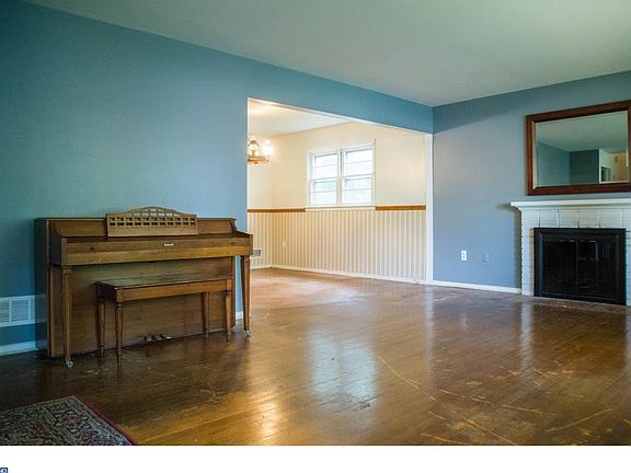 This unique home was originally built as a model for the development. It has great curb appeal with its attractive and large, covered front porch and mature trees. The home is sited serenely on the corner with a 2 car side entry garage. Entering through the front door, under the cover of the front porch, youll be greeted by the very spacious living room with oak hardwood flooring, triple window, and brick, wood-burning fireplace. Adjoining the living room is the large dining room, also with oak hardwood flooring, multiple windows and chair rail detail. The kitchen has a full wall of pine bead-board detailing, and a convenient back door that opens onto the deck. Just a few steps and youre onto the upper level that hosts 5 bedrooms, and a full hallway bath with tub/shower combo. The master bedroom has its own full bath with fiberglass shower, as well as two clothes closets. All of the 5 bedrooms on this level have oak hardwood flooring and ample closet space. The lower level contains the very large family room with built-ins, another office/den, a laundry room, and a third full bathroom. A conveniently located back door on this level takes you out into the private yard with a separately fenced built-in pool w/diving board, gas heater and newly rebuilt pool pump. This home also offers a partial, but large basement that offers an abundance of storage opportunities. Important improvements are the 2 year young HVAC system and 2 year young hot water heater. This is a large home with a great floor plan in a well-established neighborhood that has the potential be a glorious masterpiece. With the nearby park, the close proximity to schools, shopping, train stations, plus easy access to major roadways such as RT 1, RT 95, Rt 295 the location is perfect for everyones needs. Come see it today and discover all the possibilities it has to offer.