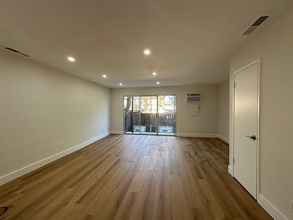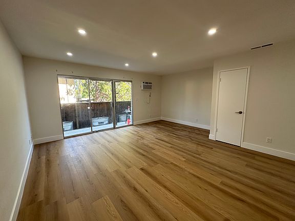 This stylish 2-bedroom, 1.5-bathroom apartment is perfect for renters looking for a sleek, modern vibe with all the essentials. The kitchen features crisp white cabinets, minimalist stainless-steel handles, and a sparkling quartz countertop that's ideal for meal-prepping or keeping things tidy. With stainless-steel appliances, including a fridge and electric stove, it's designed for both function and style. The recessed ceiling lights keep the space bright and fresh, paired with light wood floors throughout for a cozy, modern look. The living area is spacious and open, with large sliding glass doors that lead to your own private patio great for relaxing or enjoying the fresh air. Recessed lighting adds brightness to the room, while the warm, natural-toned floors create a comfortable, welcoming feel. This apartment offers minimalist, functional design with neutral colors and quality finishes that create a polished yet relaxed atmosphere. It's an ideal space for anyone looking for a modern, comfortable place to live. 12 month lease. Owner pays for water and garbage. Coin operated laundry onsite.