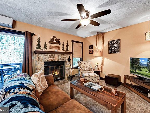 JACK FROST MUST SEE! 5 star rating on VACATION RENTAL! 2 bedrooms 1 1/2 bath totally renovated turnkey townhome. Just bring your clothes and enjoy all the POCONOS has to offer. A great investment (home has an excellent rental history), fun vacation home, or perfect as a primary home. Slate GE appliance pkg, full sized washer and dryer, new H20 heater, Tile backsplash, all windows replaced, New Storm door, Keyless Entry, 3 Zone Ductless AC/Heat. Wood Burning FP. Mountain decor and furnishings. Ski Trail minutes to top of the slopes. Affordable HOA fee includes landscaping, snow removal right to front door!, trash removal, water, sewer, cable/IT, exterior staining!