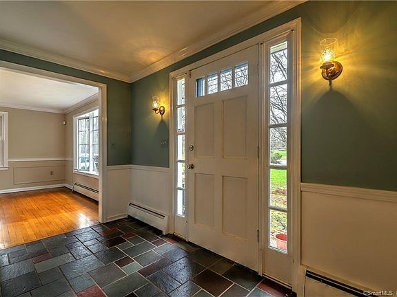 Beautiful, Sun-filled Colonial in desirable neighborhood! Gracious entry foyer. An oversized front to back Living room has a gorgeous bow window, crown molding, chair rail and french doors out to an impressive pergola & deck! Real hardwood flooring throughout every room, including the kitchen! The formal dining room also dressed with a large Bow window, Crown, and Chair rail. The kitchen comes complete with double wall ovens, a convenient second prep sink, and opens to a versatile breakfast nook area that would make the perfect office with its own door out to the deck. The sizable, main level family room with a beamed ceiling, is just off the kitchen and showcases a beautiful floor to ceiling granite fireplace and builtins! A tiled half bath and a main level laundry area complete the first floor. A lovely staircase brings you to the upper level where you will find all 4 bedrooms. At one time, 2 bedrooms were split to make this a 6 bedroom home! Great potential to reconfigure any way you want. Double sink vanities are in each of the full bathrooms! Lower level can be finished for additional sf. Large level lot includes wooded area that can be cleared for more yard if desired. Great location! Roof 10 years, Furnace 10 yrs, This house is solid with an excellent price point! Hurry! This one won't last. HIGHEST AND BEST DUE TUESDAY APRIL 26, by 7 pm.