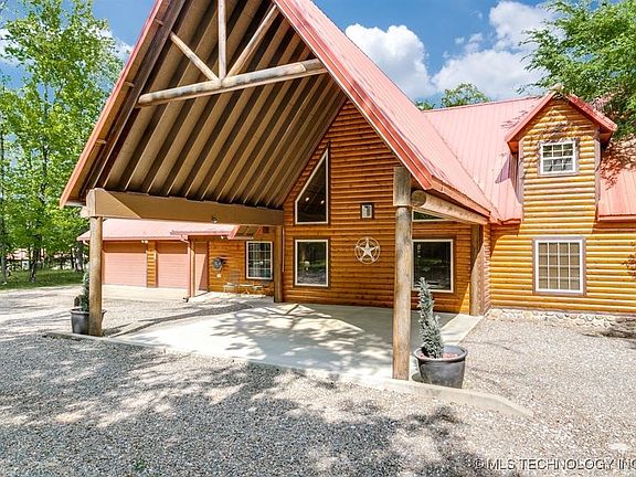 "Lady Luck" is one of the great classic Hochatown cabins. Located on the entrance road to Beavers Bend State Park and approximately a half-mile from the Choctaw Landing Casino and Resort , this cabin is in the perfect location for a great family get away. This cabin offers covered parking, a two-car garage, porte-cochere and a fenced backyard! The warm welcoming interior offers gas burning fireplace . The large granite kitchen offers plenty of counter space for meal preparation. Appliances include double door refrigerator, gas range/oven, microwave and dishwasher. There are 2 downstairs bedrooms. The attached bath has an oversized tile shower and double vanities. This attached bath has a shower/tub combo and single vanity.There is 1 bedroom upstairs. The attached bath has a stall type shower and single vanity. This cabin is turnkey and all furnishings convey with the cabin.