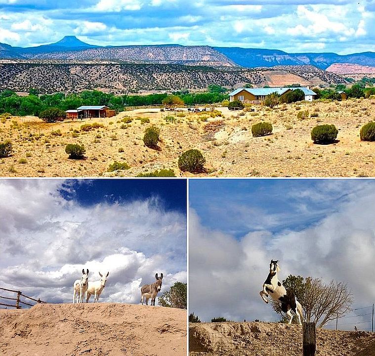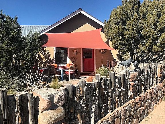 Home is For Sale with current lease tenants in place. Casa and Casita will be leased full time starting Nov 1, 2020 bringing in $4500 a month. Both Casa and Casita Guest house, sold completely furnished and fully stocked for full time tenants or rent as 2 side by side Vacation home rentals (AirBNB's) Casa leased for $2500 a month and Casita is leased for $2000 a month, 18 month lease in place. With a strong possibility of tenants wanting to renew lease(s). Brokers - 3% to buyers agent. A true Northern New Mexico style pitched metal roof home Main House (Casa) with attached B & B Style Vacation Home (Casita de Chuparosa) can also be a Guest House or opened up between homes to double Square footage to main home. Hilltop home with 360 O'Keeffe Painting views. Main House - Casa 1166 Sq. ft. with Large Great Room and Open Kitchen, Large Master Bedroom and smaller 2nd bedroom or can be Office, with Full bath between bedrooms. Stained concrete floors in all of home except carpeted bedrooms. Rock Mantle Wood burning Fireplace in Living Room, Whole home has vaulted ceilings, Big View Wood windows. Separate Laundry Room With New washer and new dryer outside through Patio. Kitchen with New 4 burner Stainless steel stove, New Stainless steel Refrigerator and a Kitchenaid Dishwasher. Casita (Guest House) is existing B & B style Vacation Home business called Casita de Chuparosa. In business for 15 ½ years. Year round occupancy, $4000-$5000 monthly year round income. Attached to main home with 2 separate entrances. Great Room with Open Full Kitchen, 2 bedrooms and 1 full bath. See floor plan in photos. Converting main home to another AirBNB to potentially double rental revenue to $8000-$10,000 per month. See B & B Style Vacation Home website at www.abiquiu.net Shared well with neighbor, great drinking water, Very private, Neighbors 5 acres to 10 acres distance between homes. On 14 acres - 2 acres of fenced corrals, Divided Barn with 2 - 12 X 12 stalls, 12 X 12 Tack and Hay room. On best riding trails in all of Abiquiu. Owner will train buyers to run business. Includes Website, Listings on VRBO/Homeaway, AIrBNB and Trip Advisor. AirBNB Biz is currently blocked out for reservations until lease tenants depart. On hillside with 360 O'Keeffe Painting views, picture perfect view of the famous Pedernal (flat topped mountain). In neighborhood of custom homes. Located on a quiet private road. 5 minutes to Hwy 84, 8 minutes to the Abiquiu Inn, O'Keeffe Home Tour, Bode's General Store, O'Keeffe Museum Visitor Center, Las Clinicas Medical Center, Abiquiu Post Office and Phillips 66 Gas Station.