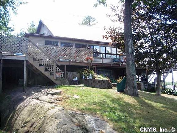 Tranquil, private, serene and absolutely gorgeous waterfront with 193 feet on Chippewa Bay. This home has views from 270 degrees of the property and is located at the end of a private road. If uninterrupted waterfront living is what you are looking for, then you have found your home. 1st FLOOR-Features living room, large kitchen, master bedroom with private bath, another full bath and a bedroom area with bunk beds. 2nd FLOOR-Open living area with a half bath and lots of storage. OUTSIDE-Fenced yard, permanent boat dock, portable boat dock and wrap around decks. AWESOME VIEWS.
