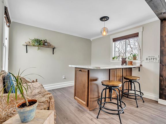 an absolute gem of a New Englander located in the heart of historic Bath. This home sits on a lovely court and boasts many recent updates - renovated kitchen, new electric water heater (2023), FHA system (2021), and a new roof on the 2 car garage (2021). Enjoy the sunrise in the front yard while you tend to your vegetable garden (raised beds are hibernating under the snow), then enjoy the sunsets in the backyard on the deck or around a fire on the stone patio. The home is also walking distance to in-town shops and restaurants - a perfect mix of privacy and recreation.