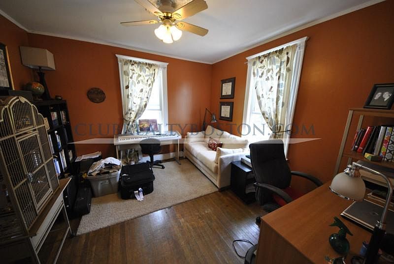All the amenities Gorgeous details in this large two bedroom with ceiling fans, hardwood floors, crown moldings, eat-in kitchen with dishwasher, large bedrooms, closets, pantry, off street parking, laundry, and steps from the YMCA and all shops and bars in Oak Square. Express buses MBTA 501,503, and 57,64 buses outside.